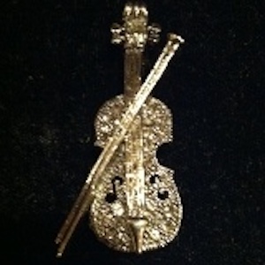 Silver Crystal Violin Pin